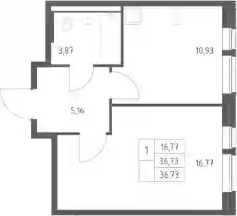 8 087 074 ₽1-к.квартира, 36.73 м², 9 эт.
