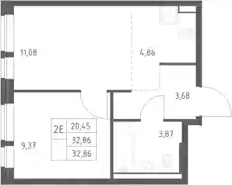 2-к.квартира, 32.86 м², 15 эт. в ЖК Квартал Авиаторов Корпус 2