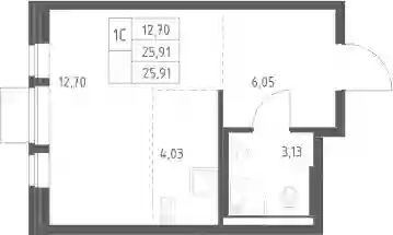 Студия, 25.91 м², 13 эт. в ЖК Квартал Авиаторов Корпус 2