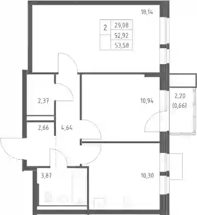 2-к.квартира, 52.92 м², 10 эт. в ЖК Квартал Авиаторов Корпус 3
