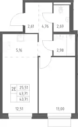 8 065 238 ₽2-к.квартира, 43.71 м², 22 эт.
