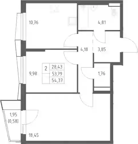 2-к.квартира, 53.79 м², 21 эт. в ЖК Квартал Авиаторов Корпус 4