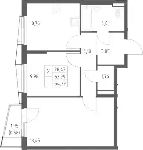 9 986 759 ₽2-к.квартира, 53.79 м², 18 эт.