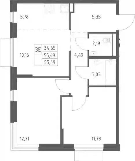 12 900 038 ₽3-к.квартира, 55.49 м², 15 эт.