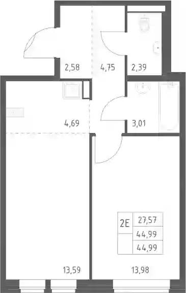11 214 398 ₽2-к.квартира, 44.98 м², 6 эт.
