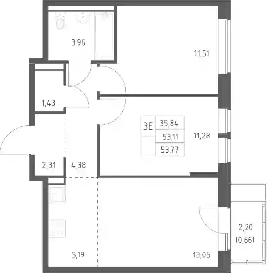 11 531 392 ₽2-к.квартира, 53.79 м², 12 эт.