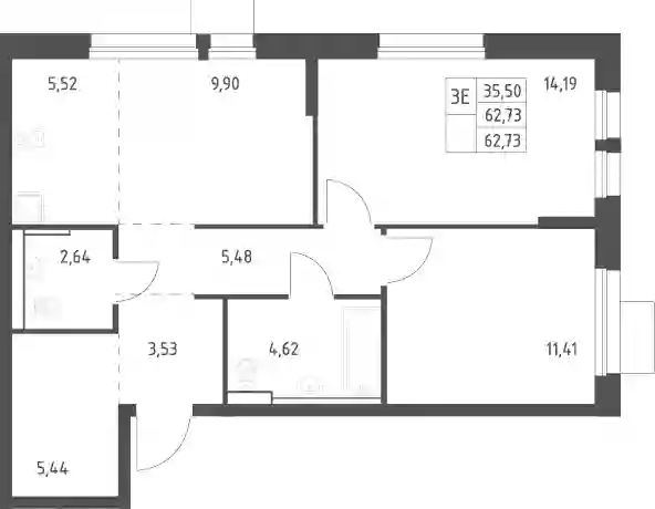 15 452 624 ₽3-к.квартира, 62.63 м², 5 эт.