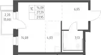6 291 949 ₽Студия, 27.29 м², 14 эт.