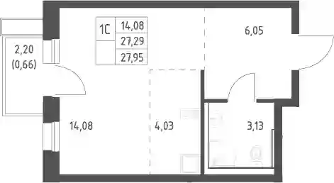 6 291 949 ₽Студия, 27.29 м², 14 эт.
