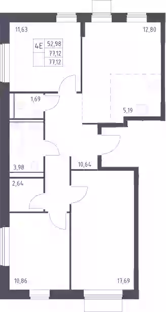 4-к.квартира, 77.12 м², 8 эт. в ЖК Квартал Домашний Корпус 1
