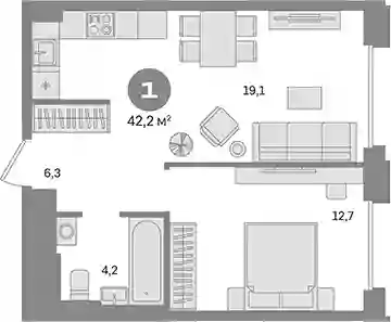 1-к.квартира, 42.2 м², 21 эт. в ЖК Квартал Герцена Корпус 1