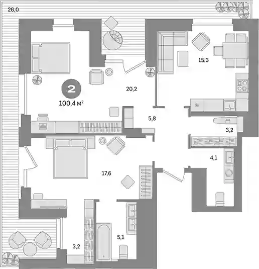 3-к.квартира, 74.4 м², 20 эт. в ЖК Квартал Герцена Корпус 1