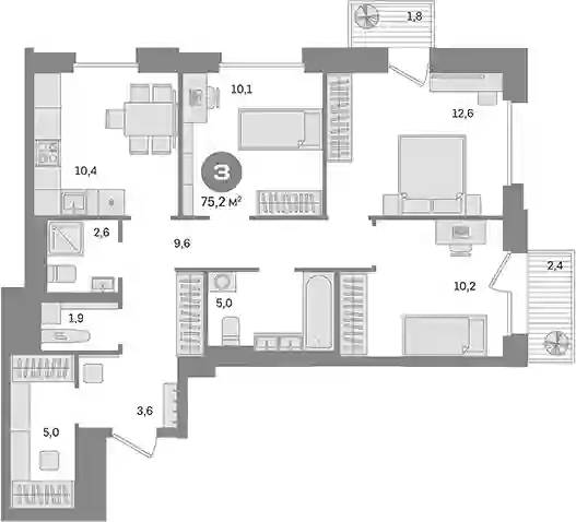 3-к.квартира, 71 м², 8 эт. в ЖК Квартал Герцена Корпус 1