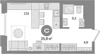 Студия, 25.8 м², 7 эт. в ЖК Квартал Герцена Корпус 1