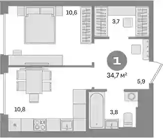 1-к.квартира, 34.7 м², 22 эт. в ЖК Квартал Герцена Корпус 2
