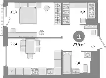 1-к.квартира, 37.9 м², 12 эт. в ЖК Квартал Герцена Корпус 2