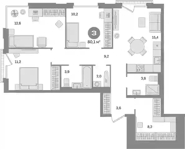 3-к.квартира, 80.1 м², 8 эт. в ЖК Квартал Герцена Корпус 2