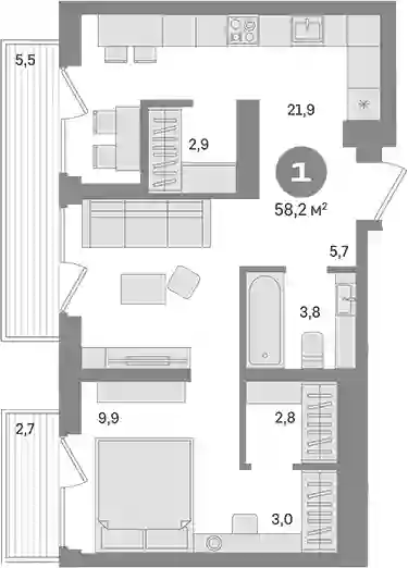 22 620 000 ₽1-к.квартира, 55.8 м², 12 эт.