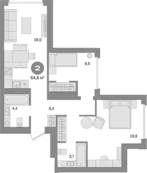 2-к.квартира, 64.8 м², 26 эт. в ЖК Квартал Издание Корпус 3
