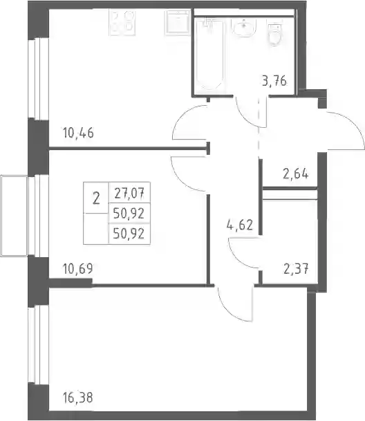 17 856 993 ₽2-к.квартира, 50.92 м², 17 эт.
