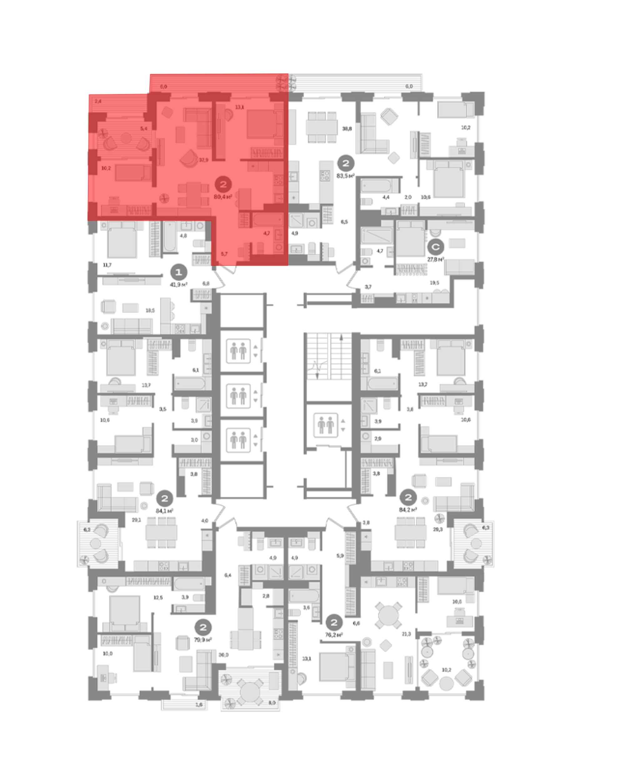 В проекте предложено 50 вариантов планировочных решений. На первых и последних этажах — уникальные форматы: с террасами, отдельным входом, двухуровневые. Их всего 126. На последних этажах башен предложены квартиры со вторым светом, несколькими террасами, бассейном, сауной, дымоходом под камин, помещениями под зимний сад. Все квартиры сдаются с подчистовой отделкой.