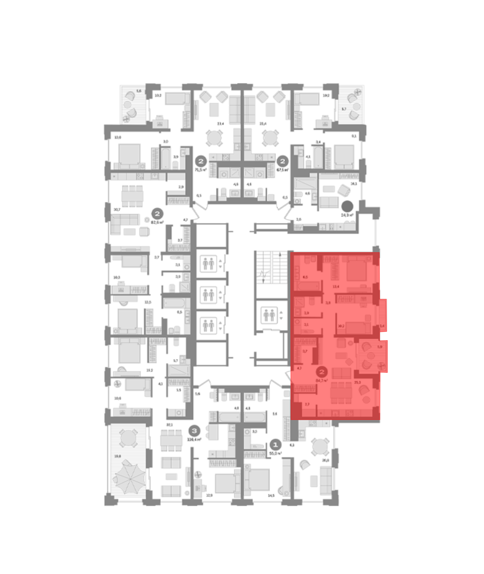 В проекте предложено 50 вариантов планировочных решений. На первых и последних этажах — уникальные форматы: с террасами, отдельным входом, двухуровневые. Их всего 126. На последних этажах башен предложены квартиры со вторым светом, несколькими террасами, бассейном, сауной, дымоходом под камин, помещениями под зимний сад. Все квартиры сдаются с подчистовой отделкой.