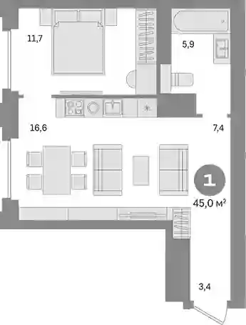 2-к.квартира, 45 м², 24 эт. в ЖК Квартал МОНС Корпус 4