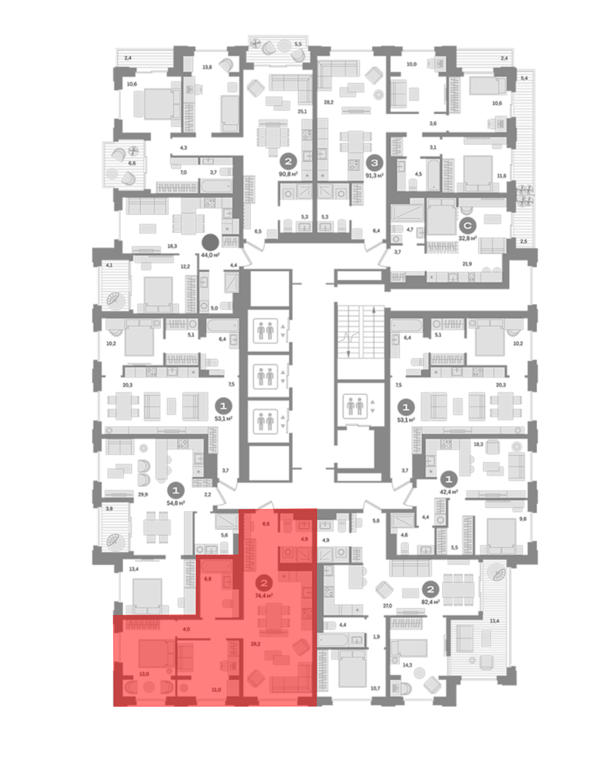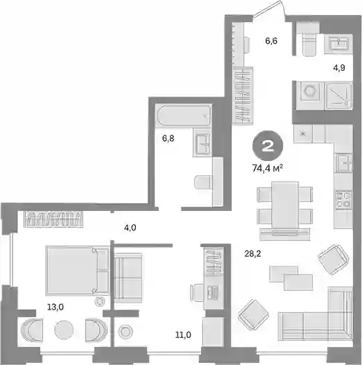 74.4 м2