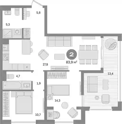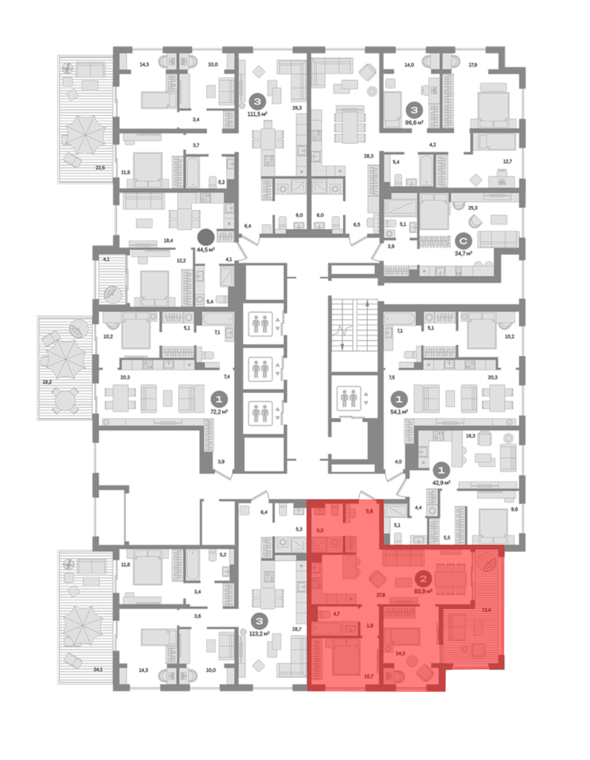 В проекте предложено 50 вариантов планировочных решений. На первых и последних этажах — уникальные форматы: с террасами, отдельным входом, двухуровневые. Их всего 126. На последних этажах башен предложены квартиры со вторым светом, несколькими террасами, бассейном, сауной, дымоходом под камин, помещениями под зимний сад. Все квартиры сдаются с подчистовой отделкой.
