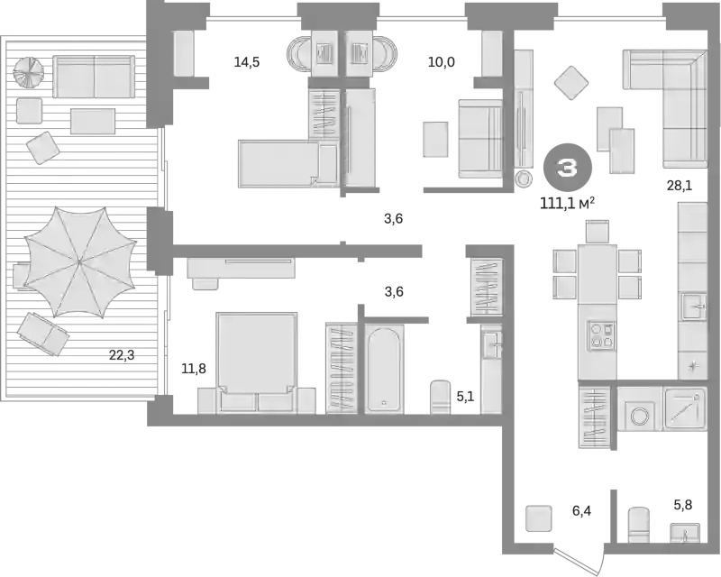 В проекте предложено 50 вариантов планировочных решений. На первых и последних этажах — уникальные форматы: с террасами, отдельным входом, двухуровневые. Их всего 126. На последних этажах башен предложены квартиры со вторым светом, несколькими террасами, бассейном, сауной, дымоходом под камин, помещениями под зимний сад. Все квартиры сдаются с подчистовой отделкой.