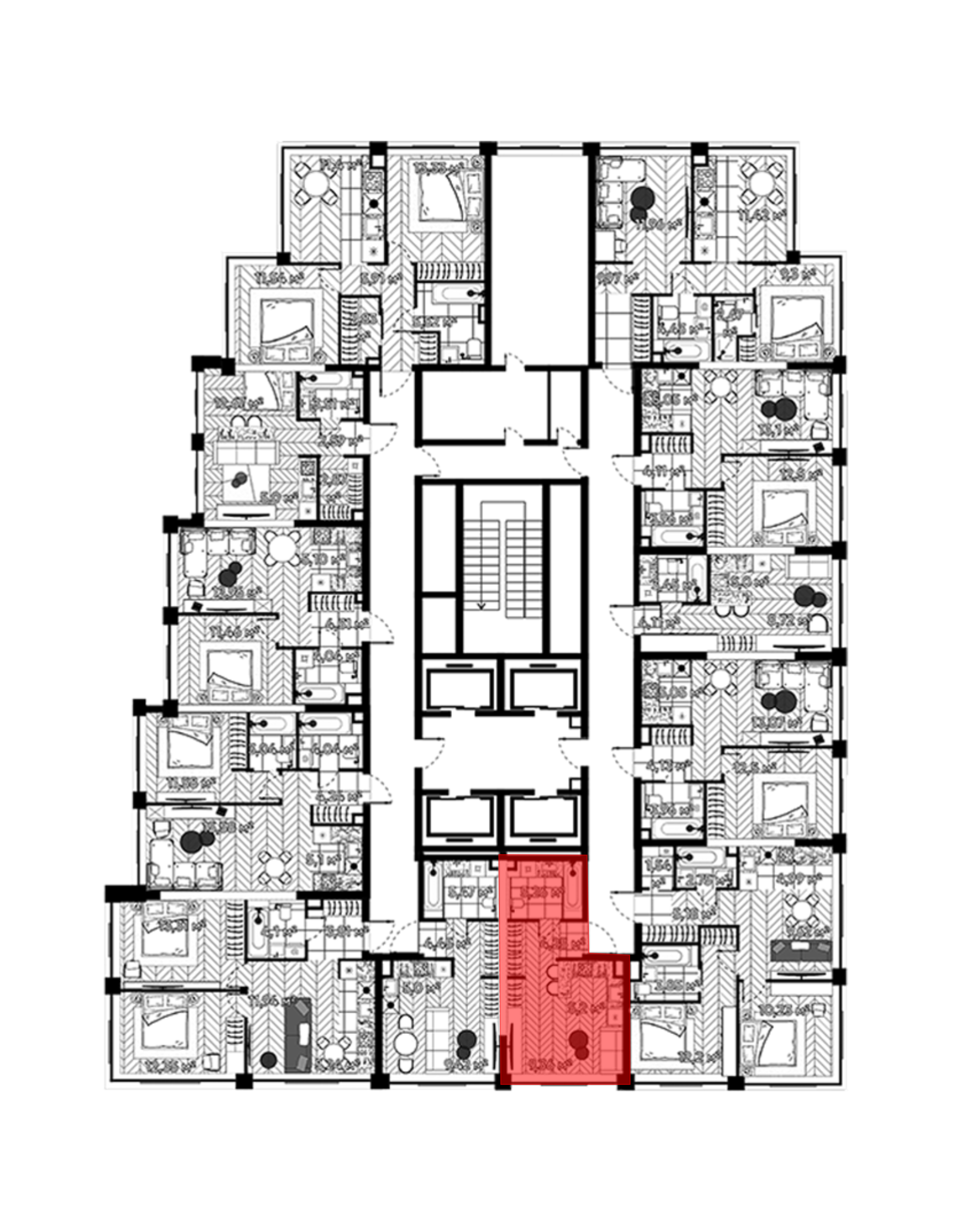 Жилой квартал состоит из 3 монолитных башен высотой от 16 до 25 этажей. Корпуса объединены общим стилобатом, где размещены объекты премиальной инфраструктуры. Архитектурная концепция проекта разработана бюро APEX. Фасады облицованы крупноформатным керамогранитом светлого оттенка с витражами из анодированного алюминия и архитектурной подсветкой. 80% площади фасада занимает остекление, что дает максимальную инсоляцию. Отделка лобби выполнена в стиле классических люксовых гранд-отелей с использованием итальянского керамогранита. В лобби размещены стойка консьержа, коворкинг, зона отдыха, помещение для колясок и самокатов с мойкой лап собак. Предусмотрена дроп-офф зона: прямо к лобби можно будет подъехать на машине. Доступ в здание осуществляется с помощью face-id, предусмотрено 3 уровня контроля доступа: в лобби, в умном лифте и в коридоре на этаже. Умный лифт без кнопок автоматически поднимается на нужный этаж считывая NFC-чип в мобильном телефоне.