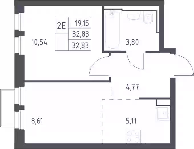 11 441 232 ₽2-к.квартира, 32.83 м², 2 эт.