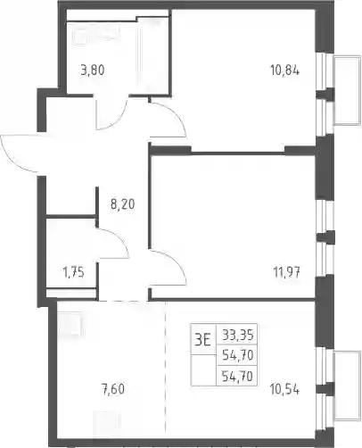 19 378 063 ₽3-к.квартира, 54.7 м², 23 эт.