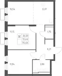 19 580 882 ₽3-к.квартира, 55.45 м², 2 эт.