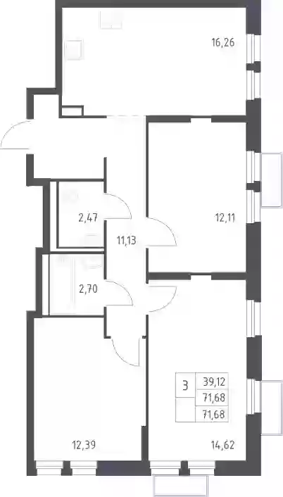 20 610 163 ₽3-к.квартира, 71.64 м², 13 эт.
