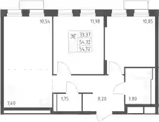 3-к.квартира, 54.72 м², 23 эт. в ЖК Квартал Строгино Корпус 2