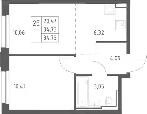 15 737 140 ₽2-к.квартира, 34.73 м², 24 эт.