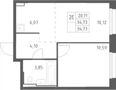 12 451 434 ₽2-к.квартира, 34.73 м², 23 эт.