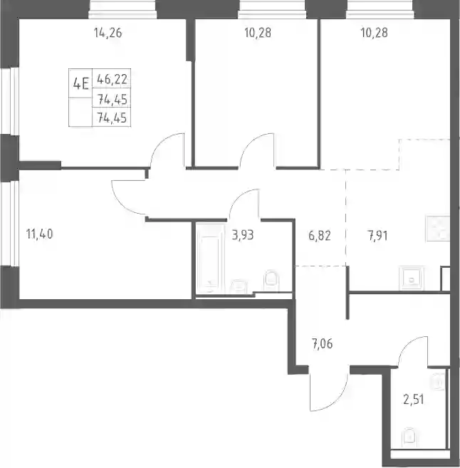 22 114 588 ₽3-к.квартира, 76.06 м², 10 эт.