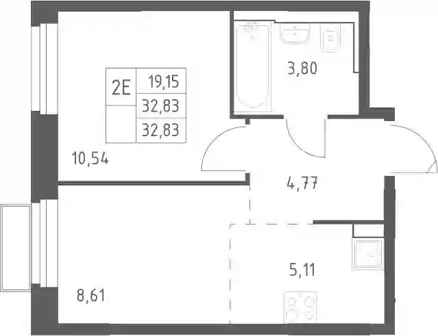 2-к.квартира, 32.83 м², 12 эт. в ЖК Квартал Строгино Корпус 2.1