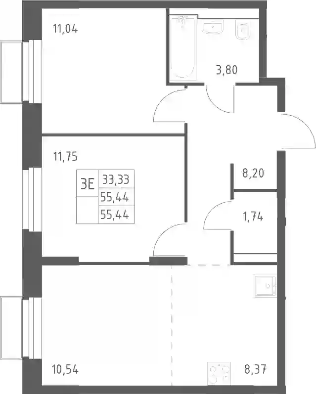 23 798 109 ₽3-к.квартира, 55.44 м², 10 эт.
