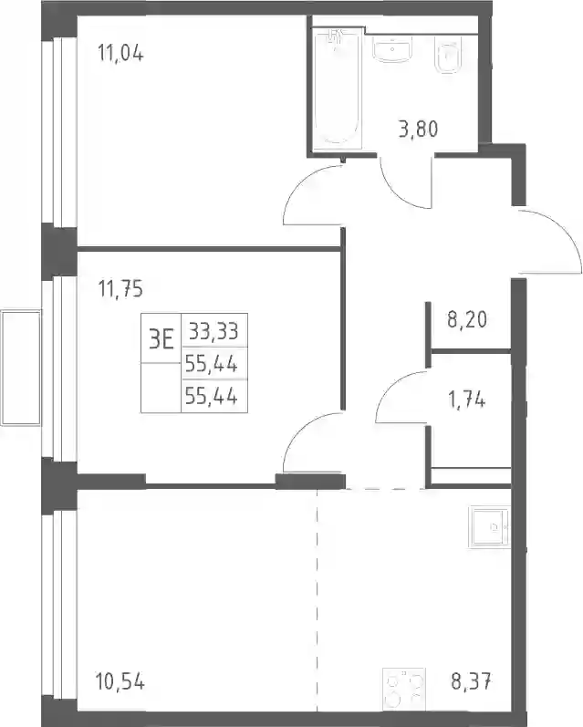 19 635 194 ₽2-к.квартира, 58.78 м², 11 эт.