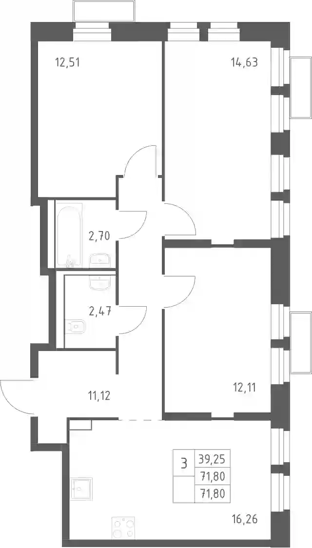 22 439 391 ₽3-к.квартира, 71.81 м², 2 эт.