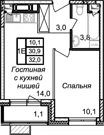 6 482 684 ₽1-к.квартира, 30.7 м², 14 эт.