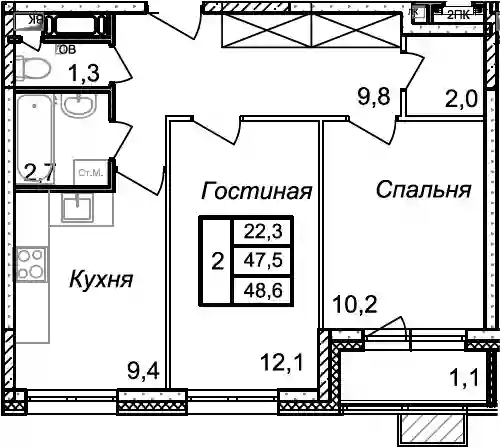 10 952 337 ₽2-к.квартира, 47.96 м², 14 эт.