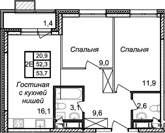 52.3 м2