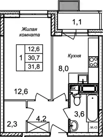 7 068 004 ₽1-к.квартира, 30.7 м², 11 эт.