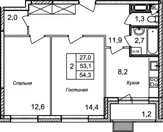 53.1 м2