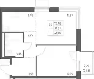 9 590 266 ₽2-к.квартира, 40.79 м², 1 эт.