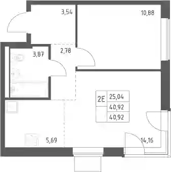 12 232 139 ₽2-к.квартира, 40.92 м², 14 эт.